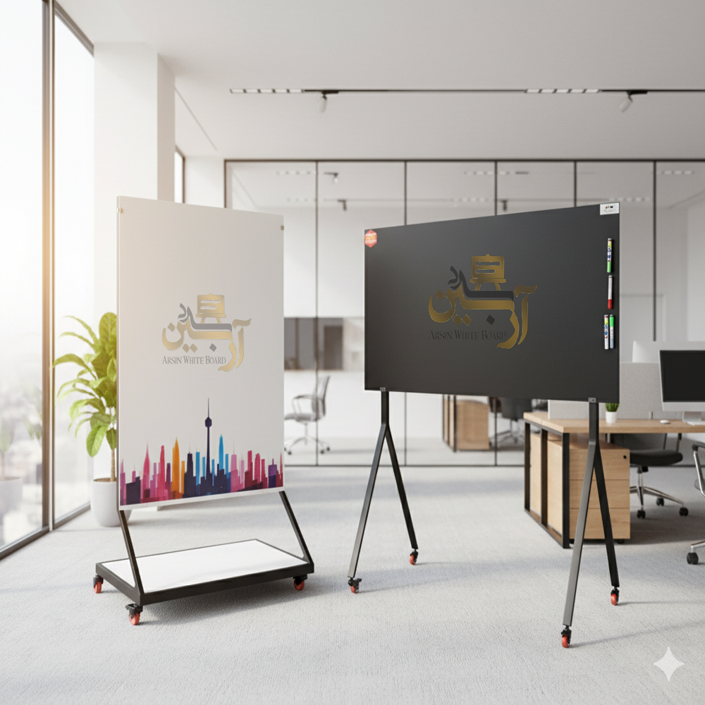 تخته وایت برد شیشه ای مدیریتی متحرک